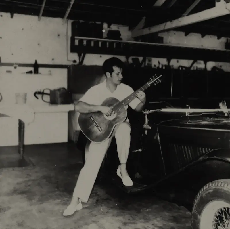 Darcy Villa Verde sentado em seu carro na garagem da casa de Jacob do Bandolim. Foto do arquivo pessoal do Jacob, fotografada pelo próprio. Rio de janeiro, Jacarepaguá, 1962. Foto cedida pelo Instituto Jacob do Bandolim.
