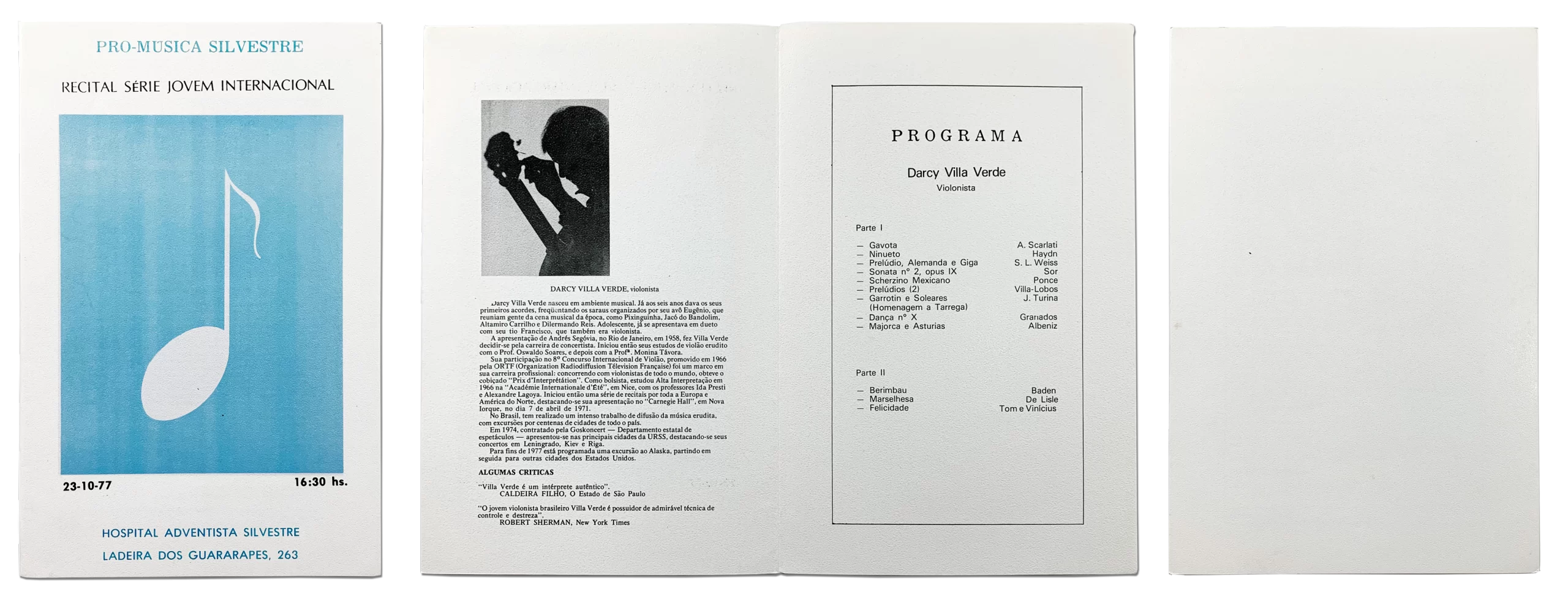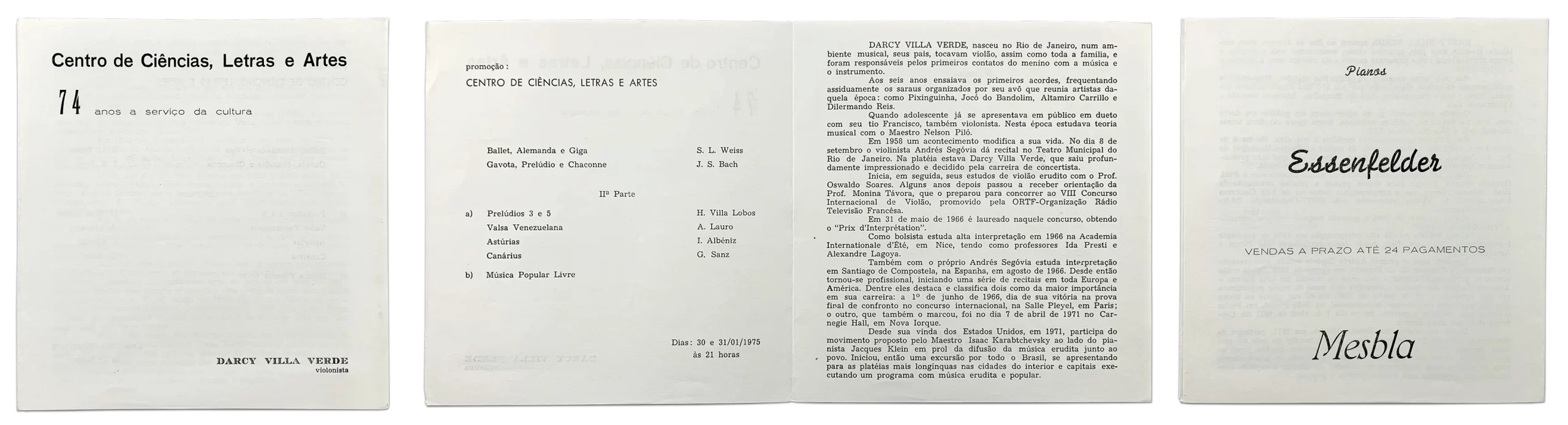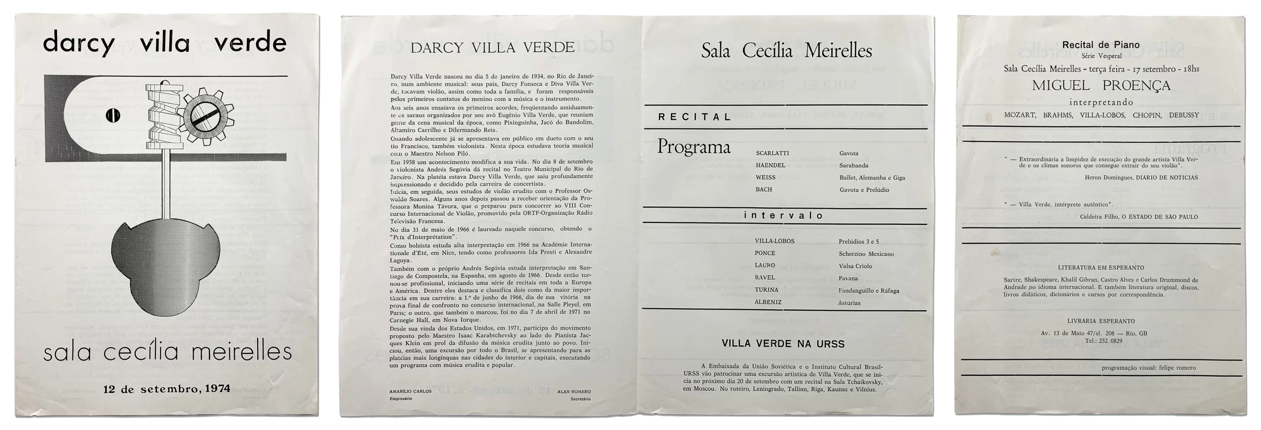 Abaixo, em um primeiro exemplo, um programa de um recital de Darcy Villa Verde dado em 1975, na Sala Cecília Meireles.