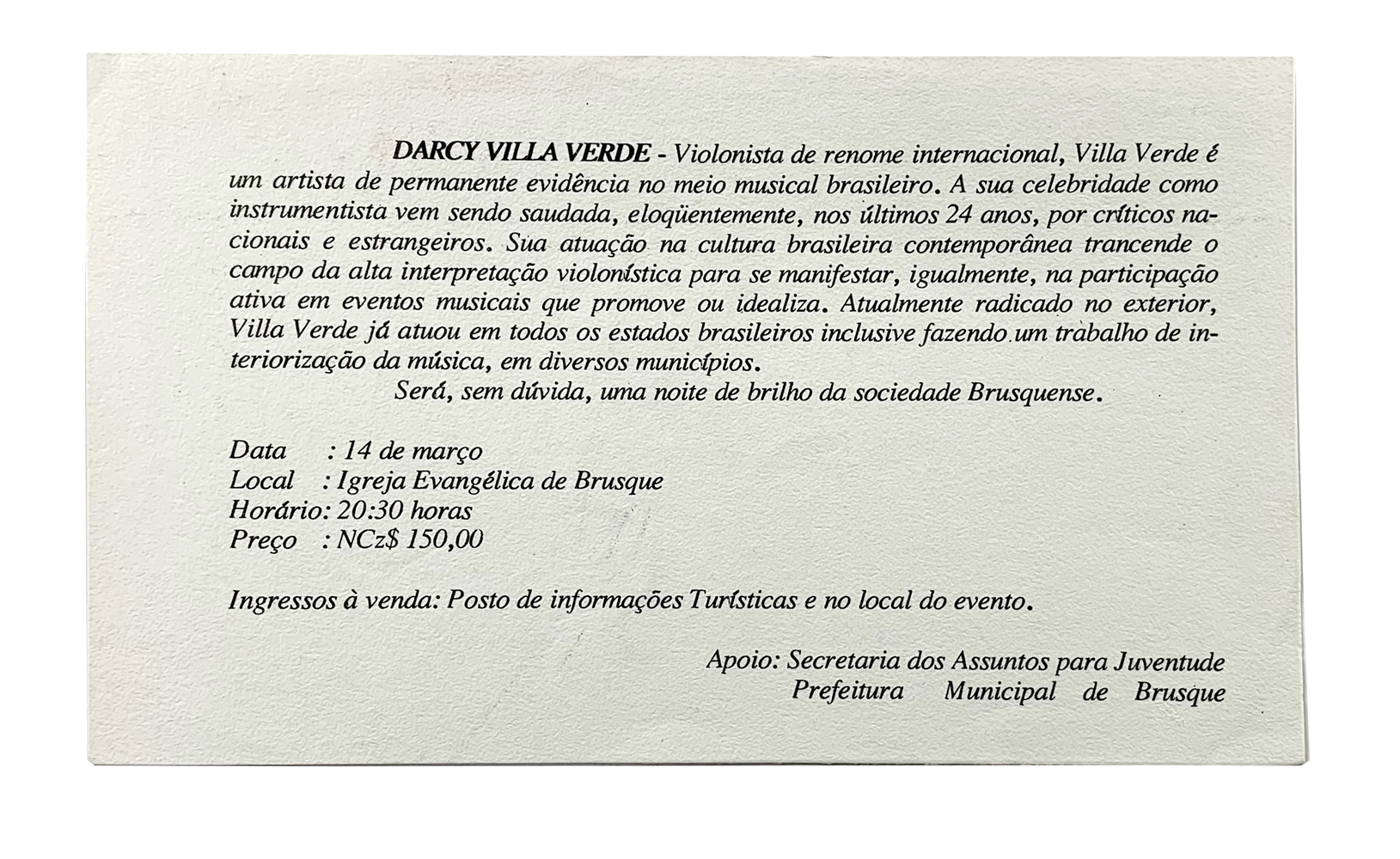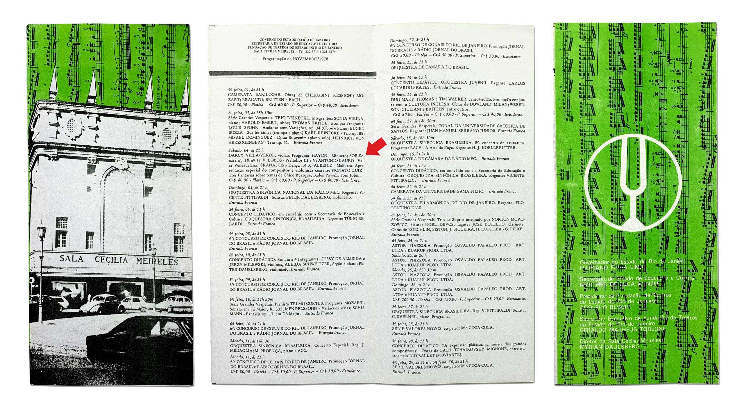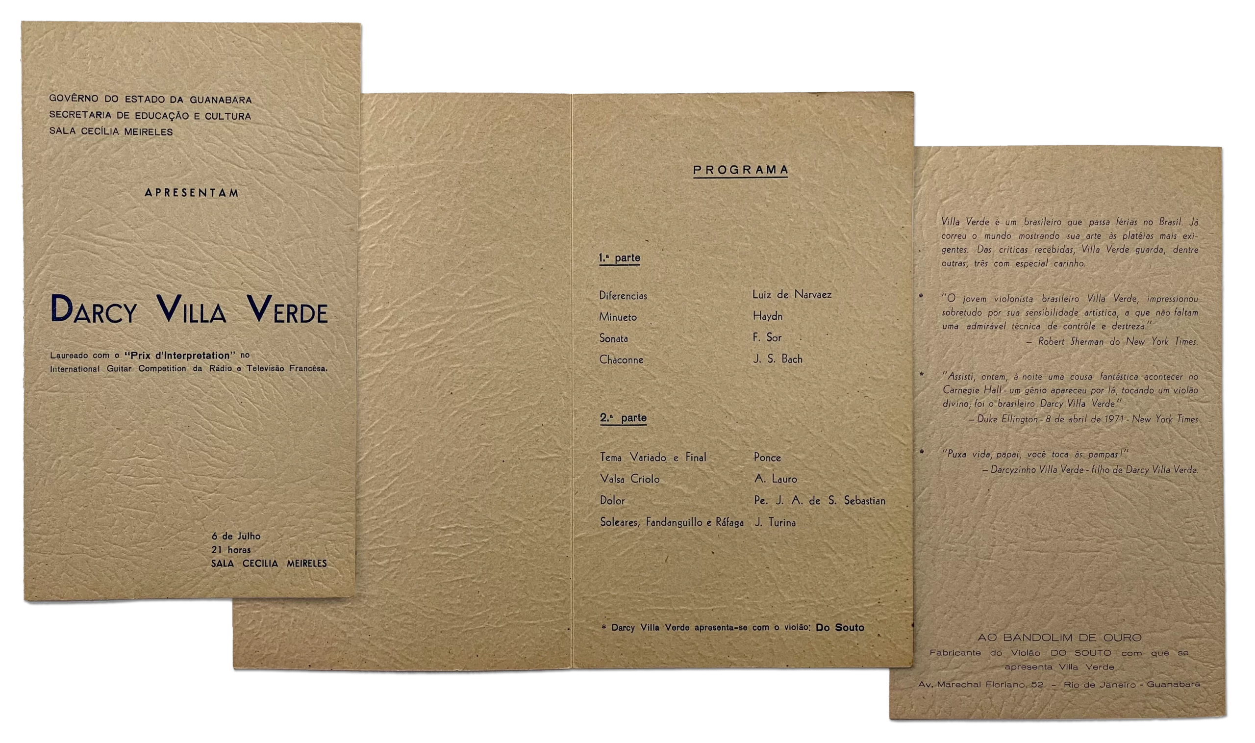 Abaixo, em um primeiro exemplo, um programa de um recital de Darcy Villa Verde dado em 1975, na Sala Cecília Meireles.